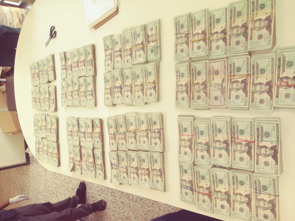 El dinero se encontró en la parte de abajo del vehículo alrededor del tanque de combustible y del lado izquierdo de la puerta trasera del conductor, mismo que se encontraba oculto en ocho paquetes que contenían billetes de dólares en denominación de 20, envueltos en nylon transparente.