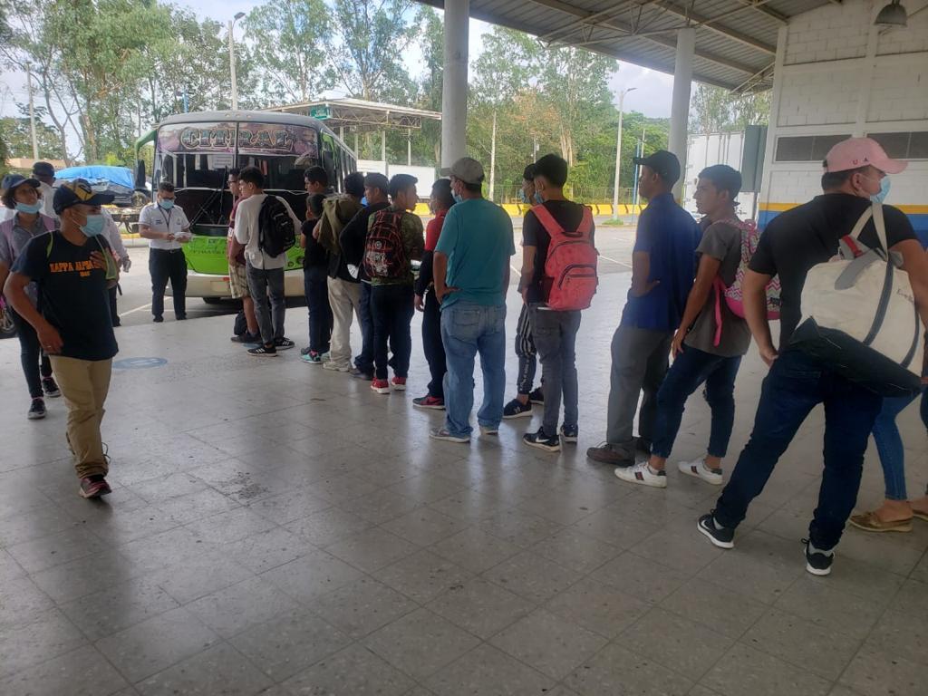 Las autoridades de Guatemala retornaron a los compatriotas por ingresar a su territorio sin cumplir requisitos. De inmediato el INM les practicó el control biométrico y varias instituciones gubernamentales les facilitaron transporte hasta la ciudad de San Pedro Sula.